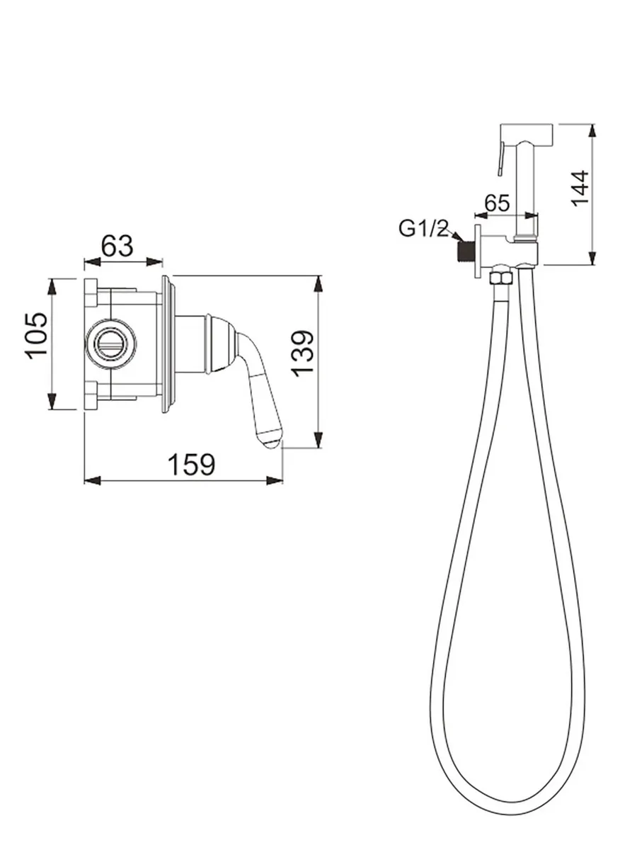 Встроенный гигиенический душ со смесителем для биде Rose R0205H