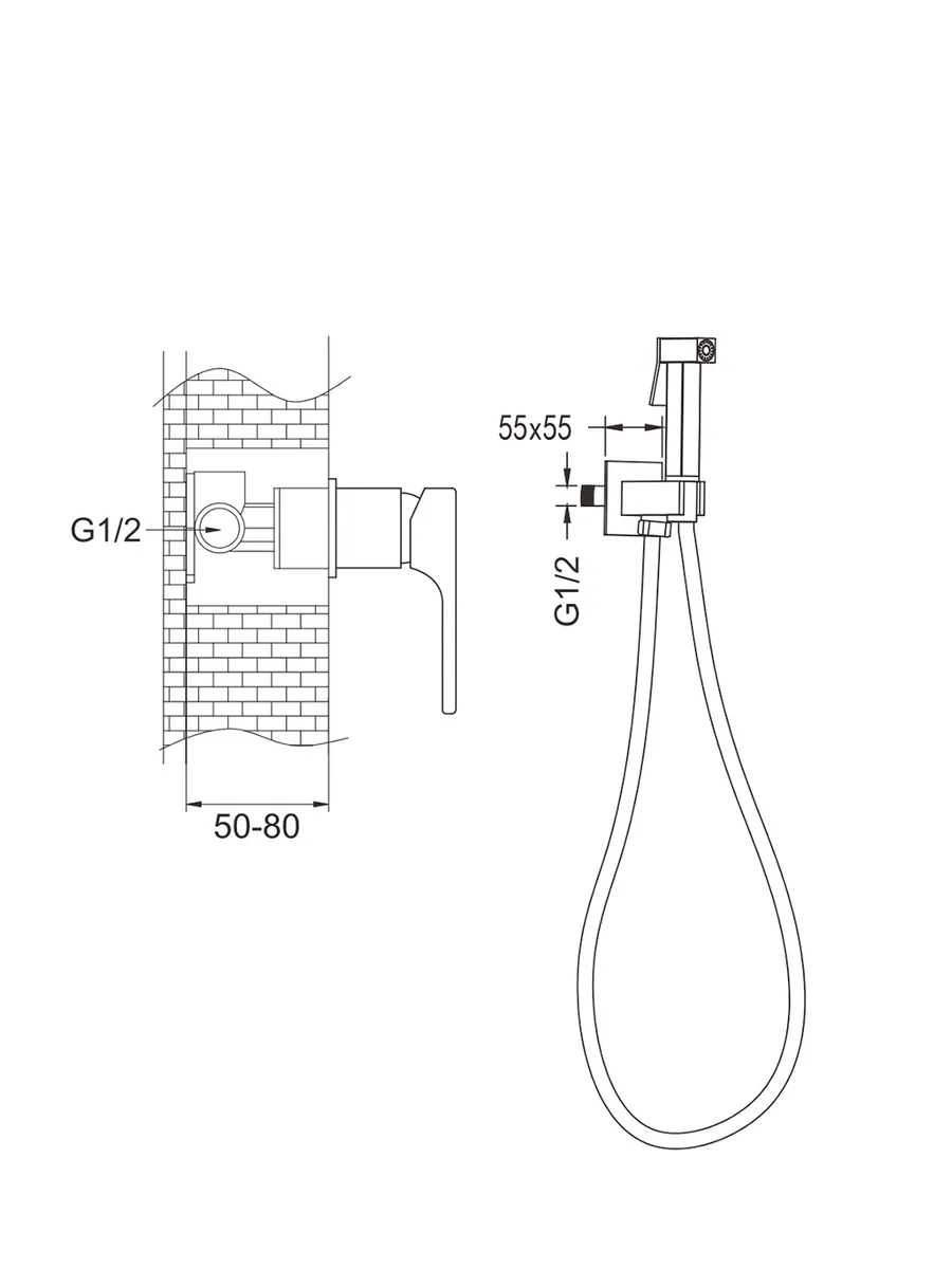 Встроенный гигиенический душ со смесителем для биде Rose R1005