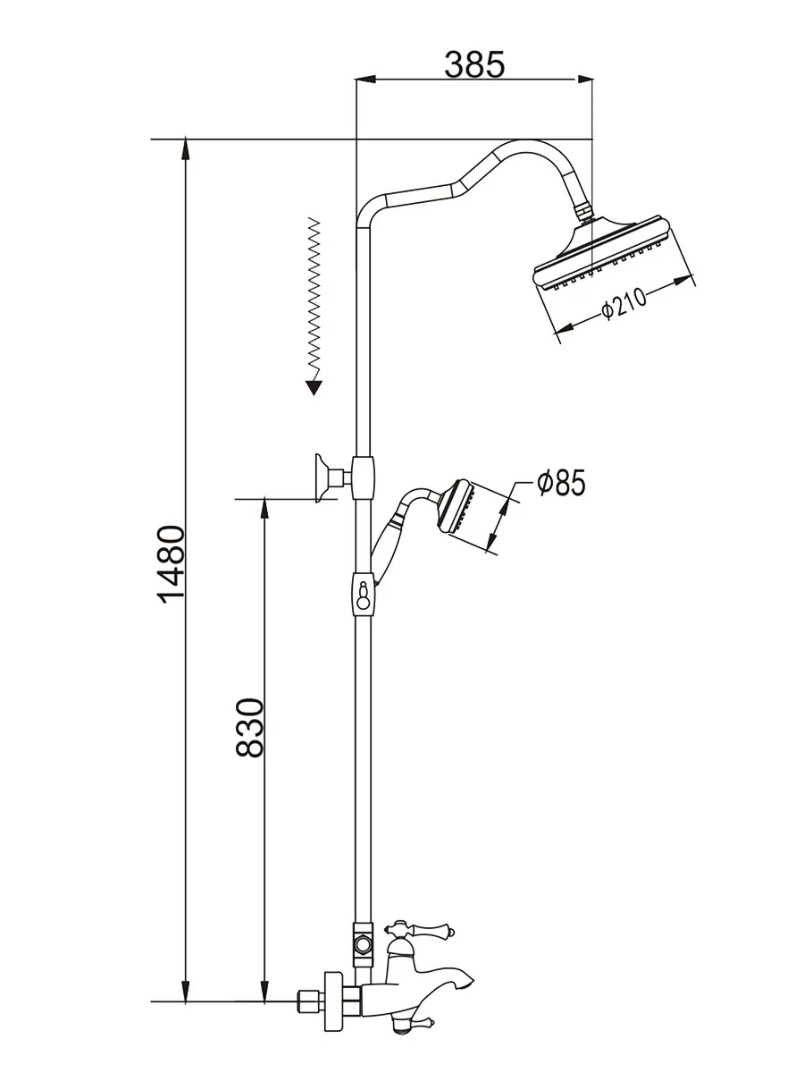 Душевая система с тропическим душем и смесителем Rose R0136Q