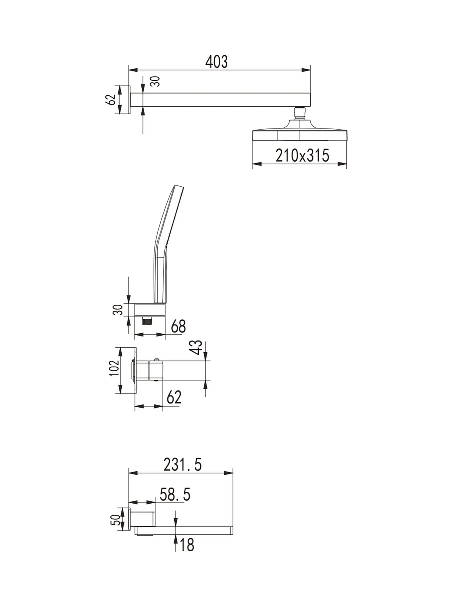 Душевая система с термостатом встраиваемый комплект Rose R1095H