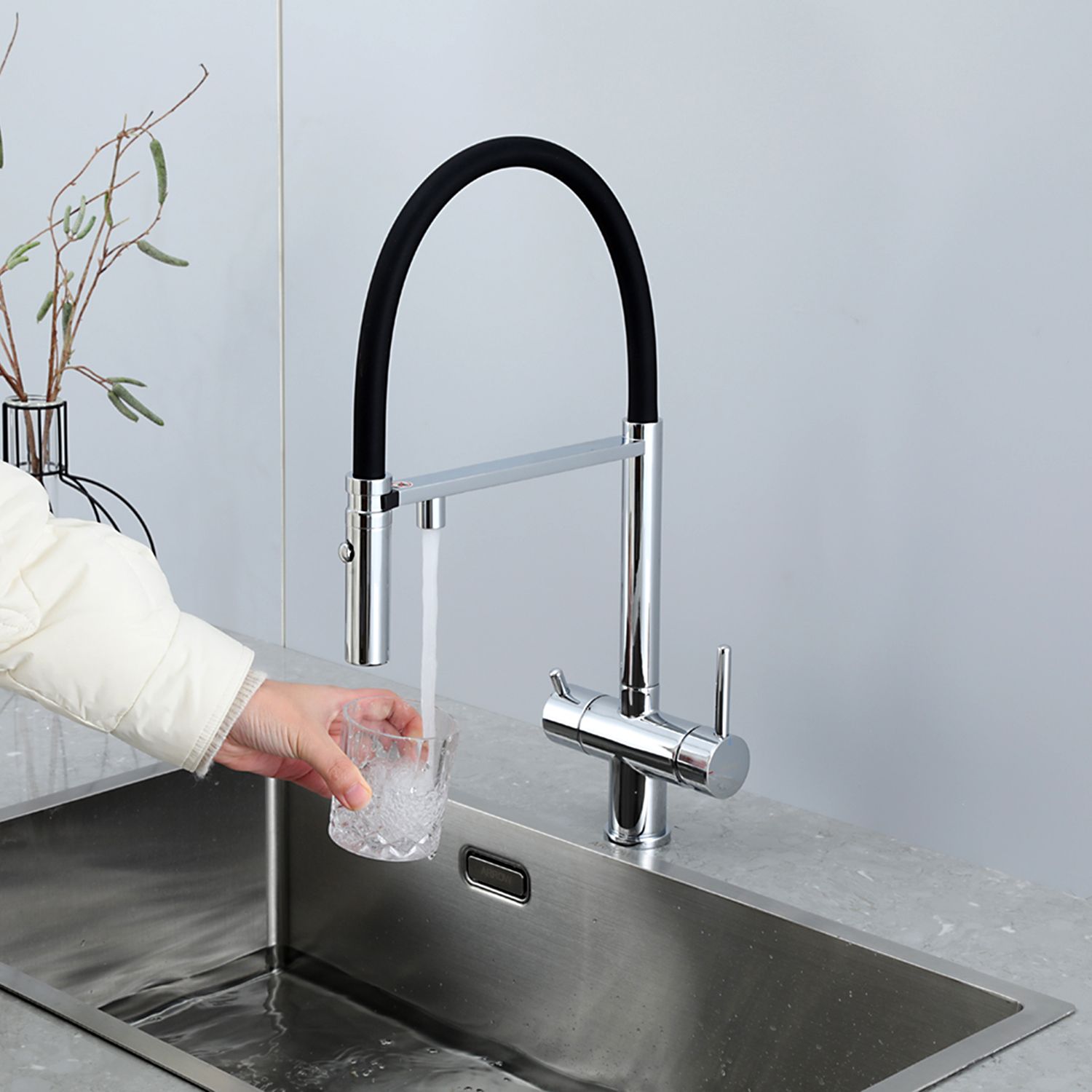Смеситель для кухни гибкий излив с фильтром для воды Gappo G4397-80