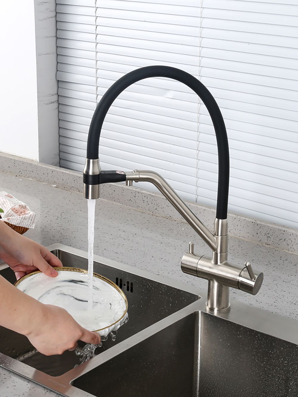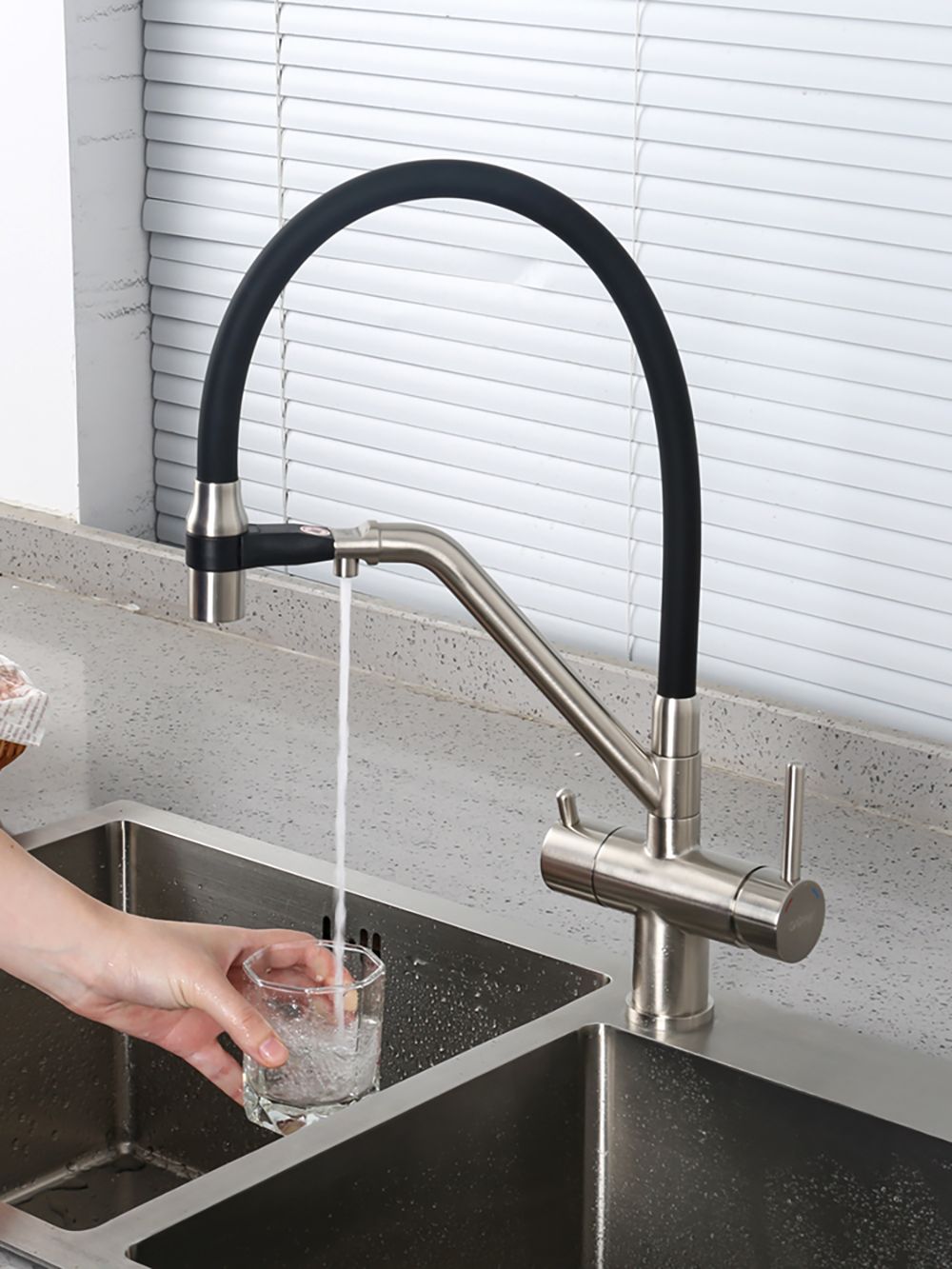 Смеситель для кухни гибкий излив с фильтром для воды Gappo G4398-85