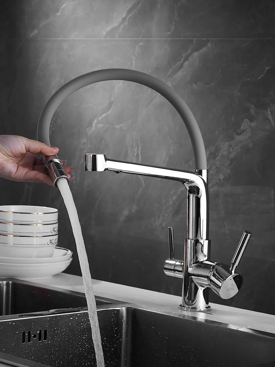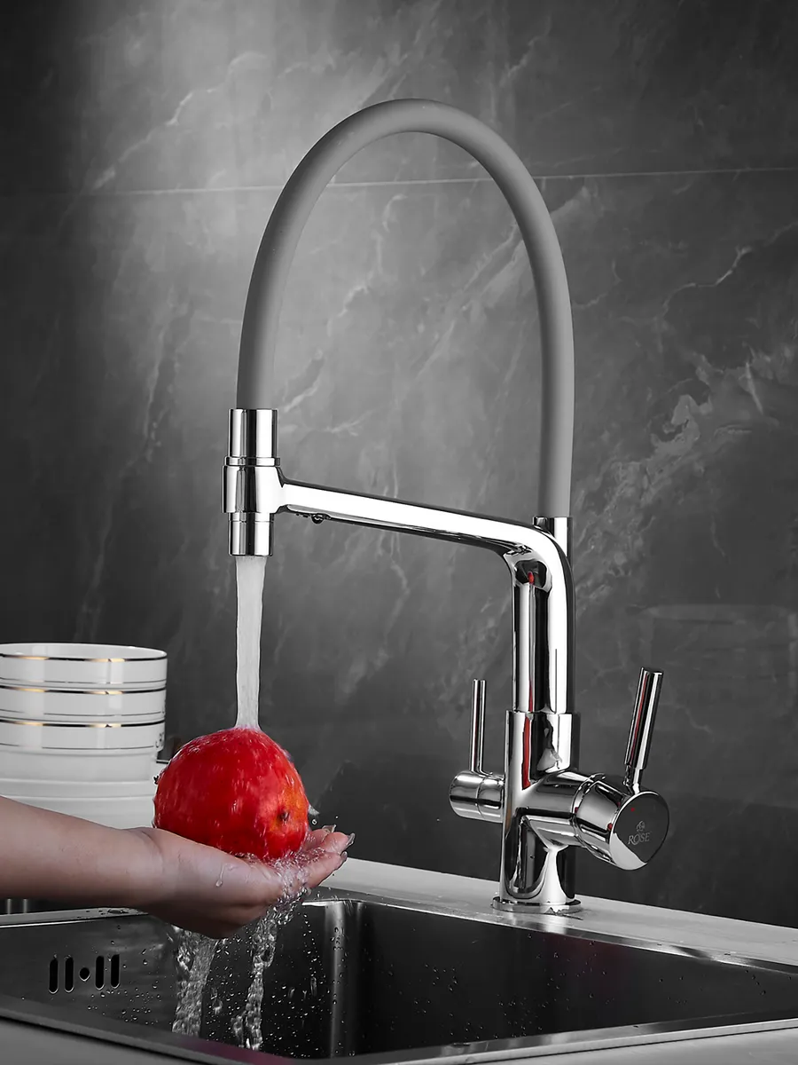 Смеситель для кухни с гибким изливом и фильтром Rose R658