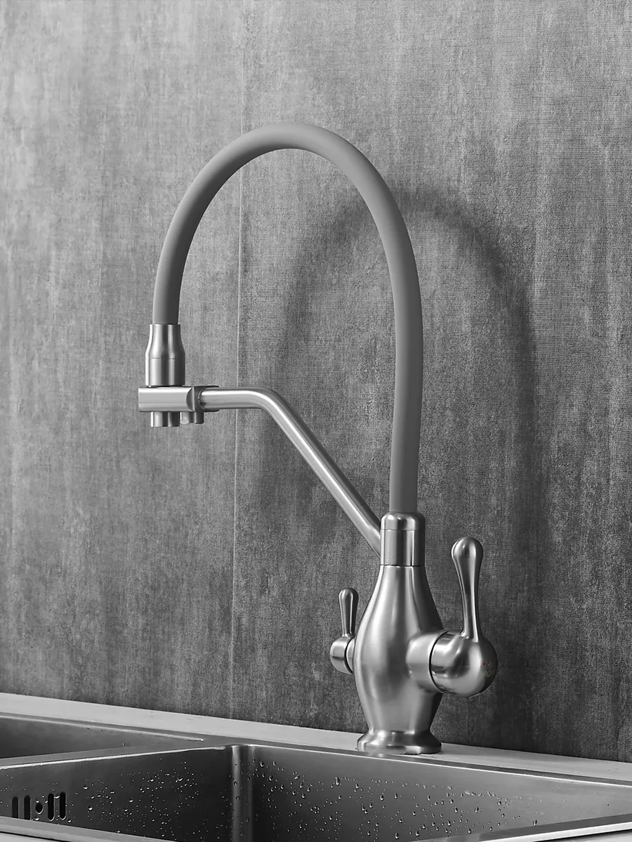 Смеситель для кухни с гибким изливом и фильтром Rose R858L