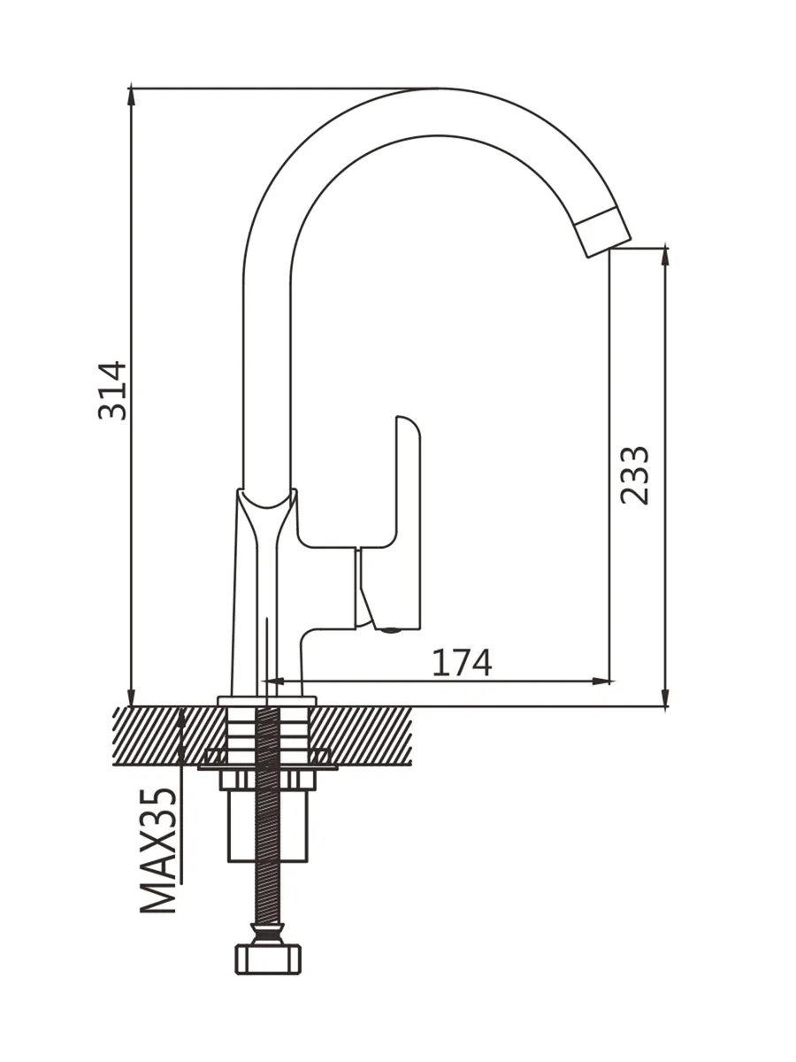 Высокий однорычажный смеситель для кухни на мойку Shevanik S6053H