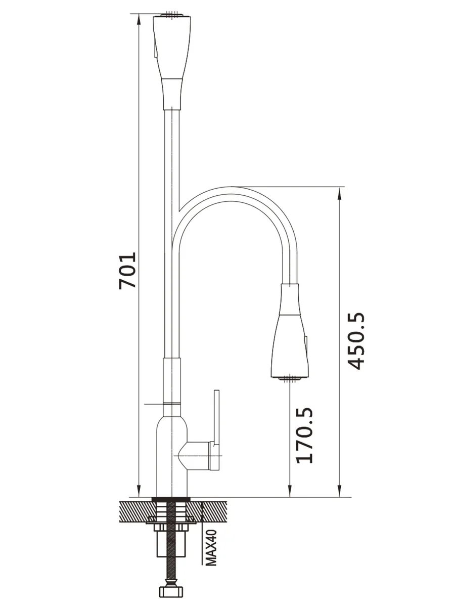 Смеситель для кухни с гибким изливом и душем Shevanik S843C-1