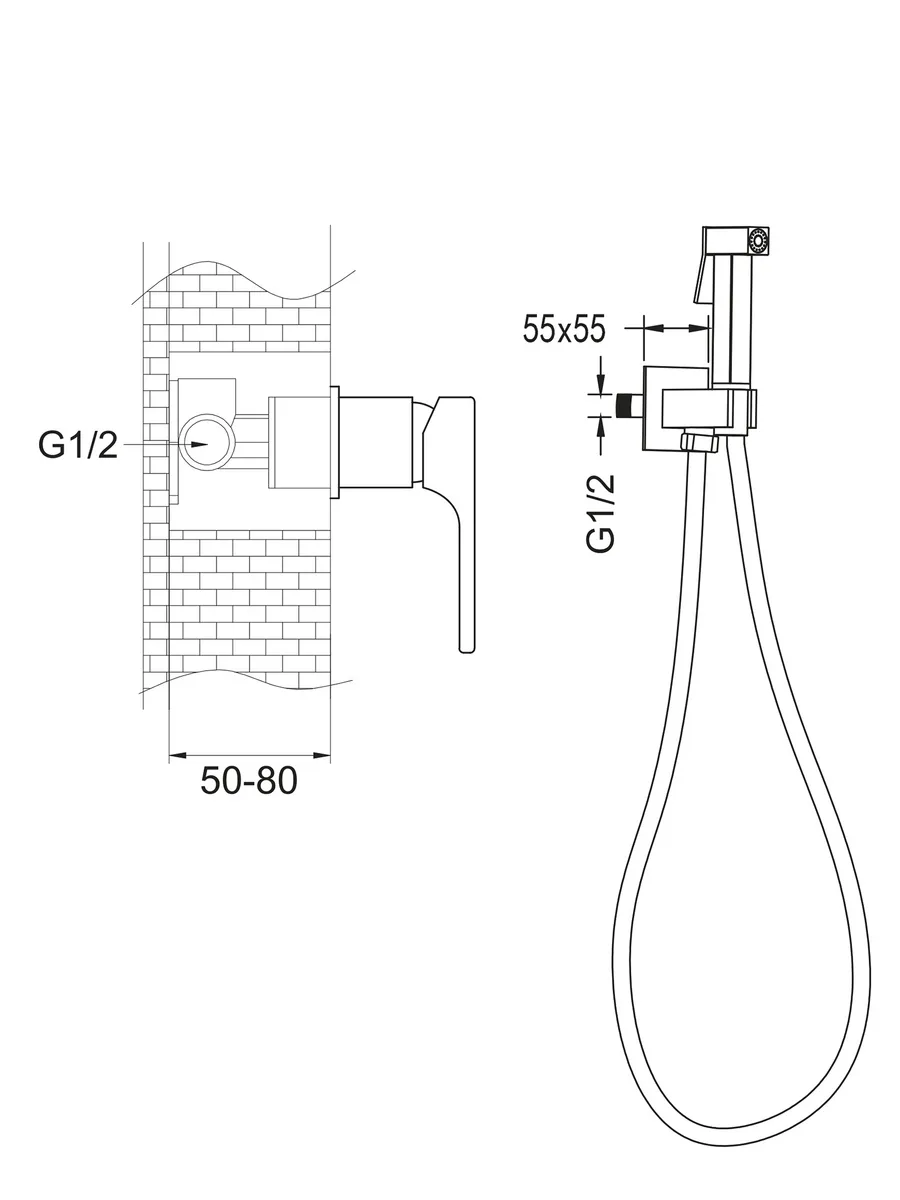 Встроенный гигиенический душ со смесителем для биде Rose R1005H