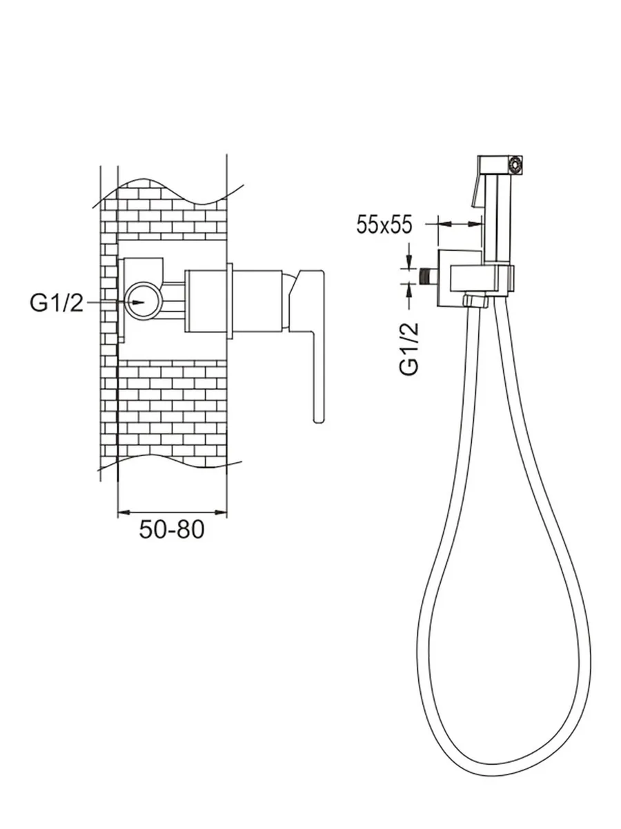 Встроенный гигиенический душ со смесителем для биде Rose R2805H