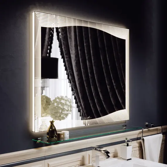 Необычный дизайн зеркала с подсветкой Monaco 90 является ярким примером элегантного современного аксессуара. Оно специально создано для тех, кто предпочитает уют, комфорт, индивидуальность и роскошь в окружающей обстановке. Зеркало с подсветкой Monaco 90 было изготовлено по индивидуальному авторскому дизайну.